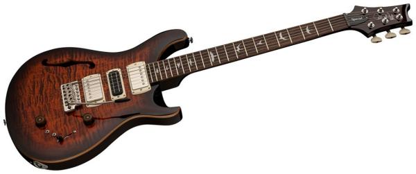 The semi-hollow construction also enhances sustain and resonance, while the f-hole adds a classic aesthetic. A 22-fret, 25” scale-length maple neck with a rosewood fretboard and PRS bird inlays ensures smooth playability and an iconic look.