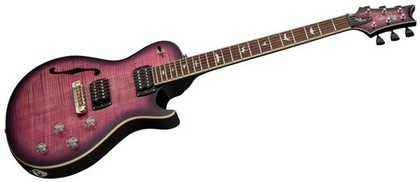 The PRS SE Artist Zach Myers (Elderberry Burst) semi hollow body electric guitar is packed with features that will satisfy even the most demanding musicians. Featuring a chambered mahogany body with maple cap, flame maple veneer, and single f-hole, the SE Zach Myers provides smooth mid-range tones with a natural, resonant internal reverb. The resonance of the semi-hollow body paired with the smooth feel of the satin finish neck will make an immediate impression in your hands.