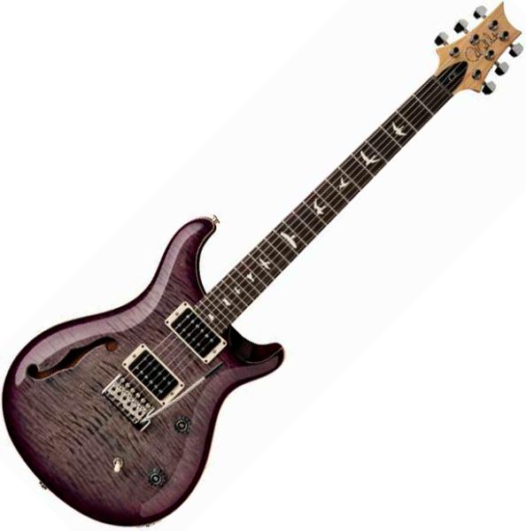 Combining the snap and sustain of a bolt-on guitar with the airy resonance of a semi-hollow body, the PRS USA CE 24 Semi-Hollow (Faded Gray Black Purple Burst)hollow body electric guitar with center block is a truly unique addition to the PRS Bolt-On lineup. The body pairs the traditional combination of a mahogany back and maple top with a bolt-on maple neck and rosewood fretboard. The neck features a Pattern Thin carve and satin nitro finish for a natural, addictive feel. The electronics consist of a volume and push/pull tone control with a 3-way toggle switch, giving a total of six classic sounds from the PRS 85/15 pickups.