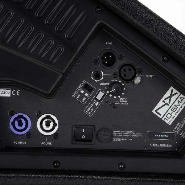 The RCFNX 10-SMA is a coaxial active loudspeaker designed primarily for use as a stage monitor, while also offering enough versatility to be used as a main speaker. It combines a high-power 10? driver with a neodymium RF compression driver, all powered by a high-performance digital amplifier. The cabinet is constructed from Baltic birch plywood, finished with a durable paint, and features a side pole mount and an ergonomic side handle for easy transport.
