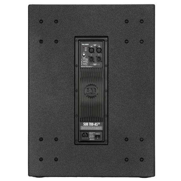 Designed to withstand the most demanding conditions, the SUB 708-AS MK3 features a birch plywood enclosure, finished with a scratch-resistant polyurethane coating. Its ergonomic handles and lightweight design facilitate easy transport and stacking. The threaded M20 pole mount on top allows for the attachment of a satellite speaker. The powder-coated metal grille, lined with acoustic foam, provides effective protection against dust and moisture, while the front vents allow for use even in confined spaces.