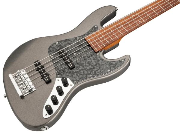 All features of this modern bass sound can also be found in the SADOWSKY MetroExpress 21-Fret Vintage J/J Bass 5-String (SMX21VJ5 L8R OKU FR) solid body electric bass.
