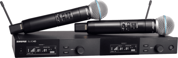 SLXD4DE dual receiver, two SLXD2 handheld transmitters equipped with a