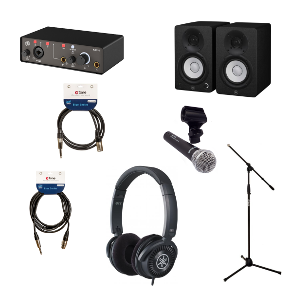 Pack including one pair of HS4 speakers + one UR12 MK3 sound card + two 1.5m Jack / XLR cables . + one HPH-150B open studio headset + one XD-410 microphone and its xh 6000 stand + one Jack / XLR microphone cable.