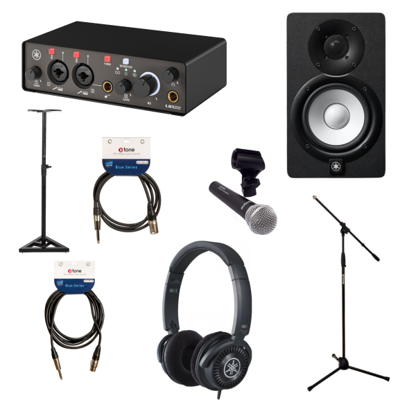 Pack including two HS5 speakers + one UR22 MK3 sound card + two 1.5m Jack / XLR cables . + one Jack / XLR 3M microphone cable + 2 speaker stands + one XD-410 microphone and its XH6000 stand + one HPH-150B open studio headset.