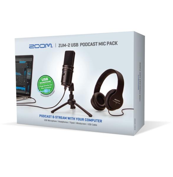 The ZUM-2 podcast pack is a turnkey solution for easy recording of professional-quality sound. It includes a USB microphone with supercardioid polar pattern, closed-back monitoring headphones, an adjustable table tripod, a windscreen and a 2-meter USB cable. Plug it into your computer and you're ready to record.